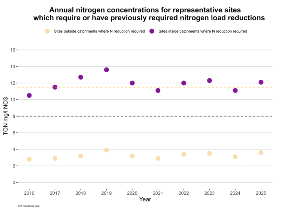 In 2021 and 2025, the EPA published an assessment on the nitrogen reductions that were needed in major catchments to support healthy aquatic ecosystems. The most recent assessment can be found here and included data up to 2024.