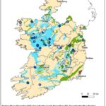 Average lake levels were higher at 57% of monitored lakes compared to levels observed in October. Average lake levels at 44 lakes were classified as ‘particularly high’ at 1 (2%) [L. Muckno, Co. Monaghan {2}] , ‘above normal’ at 2 (5%), ‘normal’ at 26 (59%), ‘below normal’ at 13 (30%) lakes and ‘particularly low’ at 2 (5%) [L. Skeagh, Co. Cavan and L. Bane, Co. Meath/Westmeath], for the month of November.