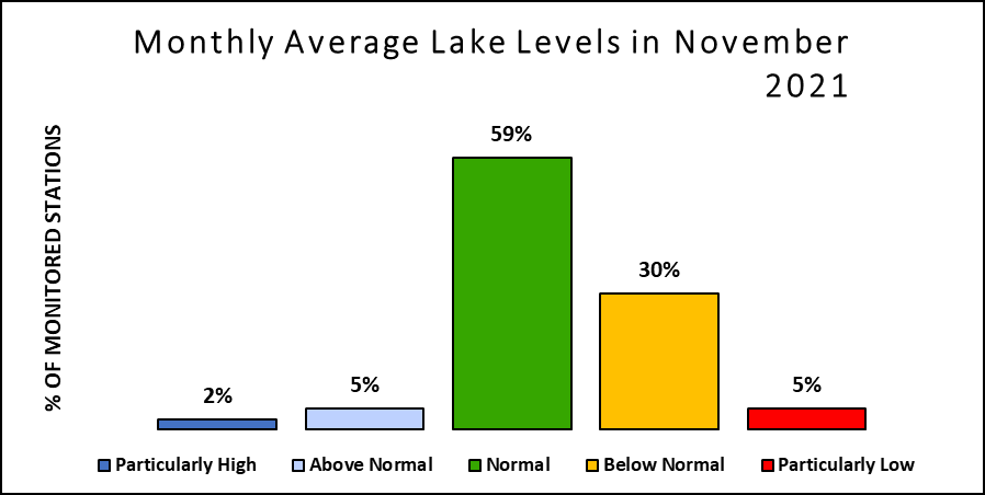 of year. Similarly, for lake level monitoring stations, 59% were in the ‘normal’ and 30% in the ‘below