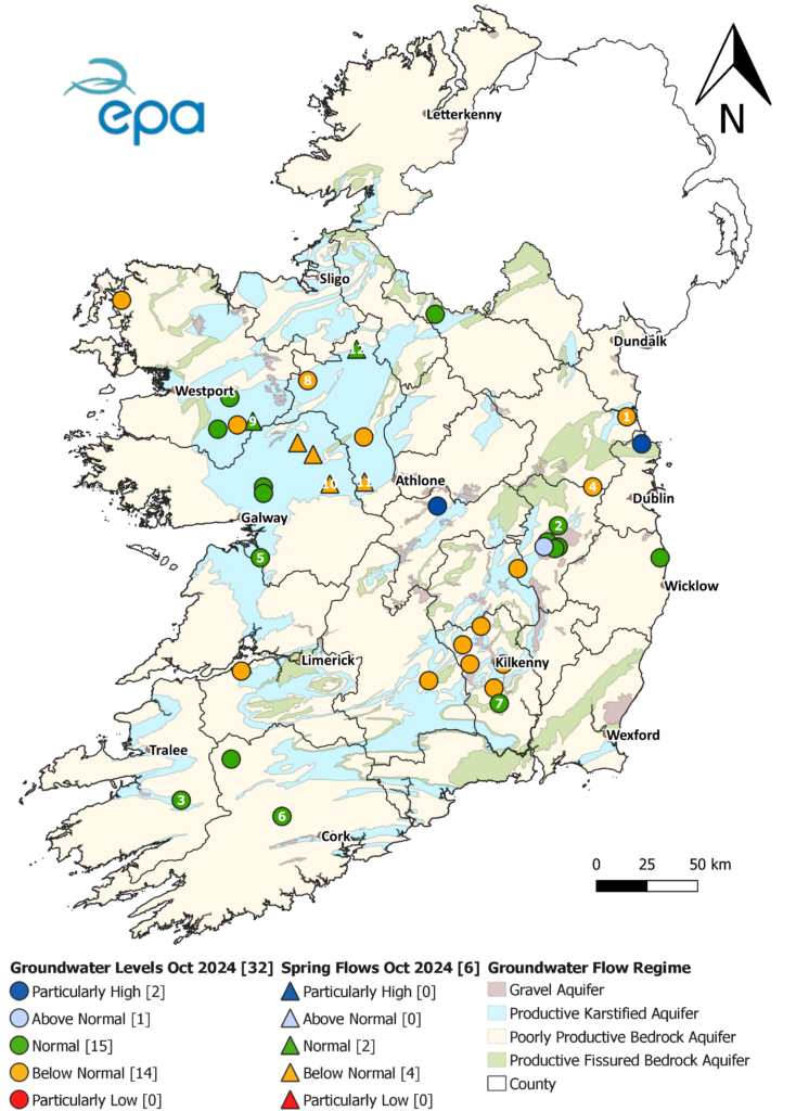 The EPA hydrology bulletin for October is now available to download. October was relatively dry for most of the country with 58% of river flows below the long-term normal range.