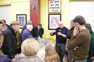 Prior to the presentations, staff from Ballinderry Rivers Trust demonstrated to the audience how a river reacts to increased flow with their Emriver ‘Rivers on the Move’ model. This large model provides an excellent demonstration of the key principles of morphological changes in a river and simulating effects such as floodplains, sediment transportation and erosion. Alan Keys and Frank were on hand to answers questions and talk about how rivers work. There was ample time for the audience to mingle, meet the experts and share stories.