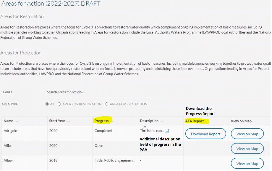 You can find updates on the progress in Areas for Action on catchments.ie and LAWaters.ie