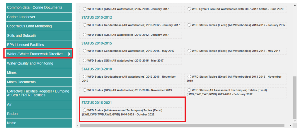You can download status data at https://gis.epa.ie/GetData/Download